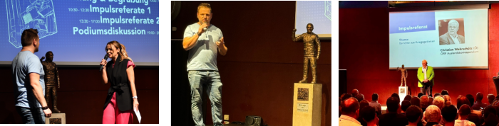 Die Skulptur wurde im Rahmen des Vortrages aufgestellt und den Besuchern präsentiert.
