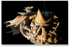 riesiger Reptilienzahn befindet, in dem zwei Schwertscheiden aus